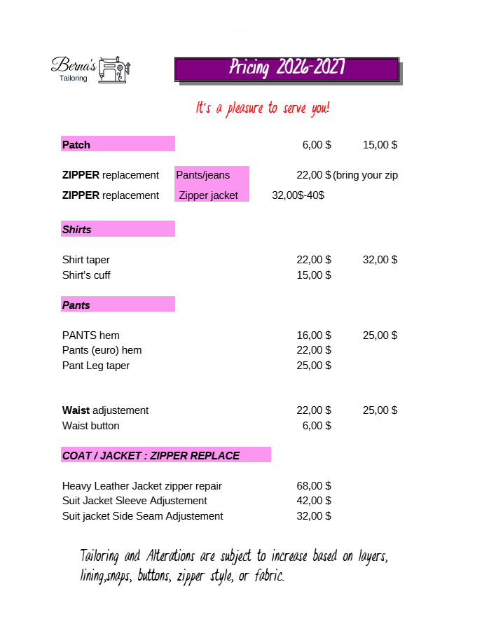 Clothing alterations at competitive prices.